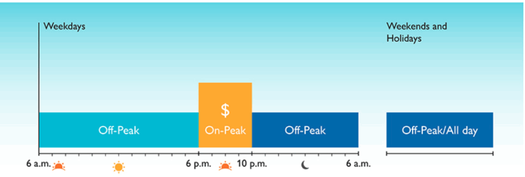 With TOU rates, the utility charges different prices depending on the time of day. During peak hours when demand on the grid is highest (6-10 p.m. on weekdays), electricity costs more. But by shifting energy-intensive tasks, like running the dishwasher or charging an EV to off-peak hours such as midday or late at night on weekdays, those enrolled in the TOU program will pay substantially less per kilowatt hour. This simple change saves you money and benefits everyone by reducing demand on our shared electricity grid. Please note that without conscientious, behavioral changes, and awareness of your personal energy usage patterns, individuals do run the risk of paying more on this rate.